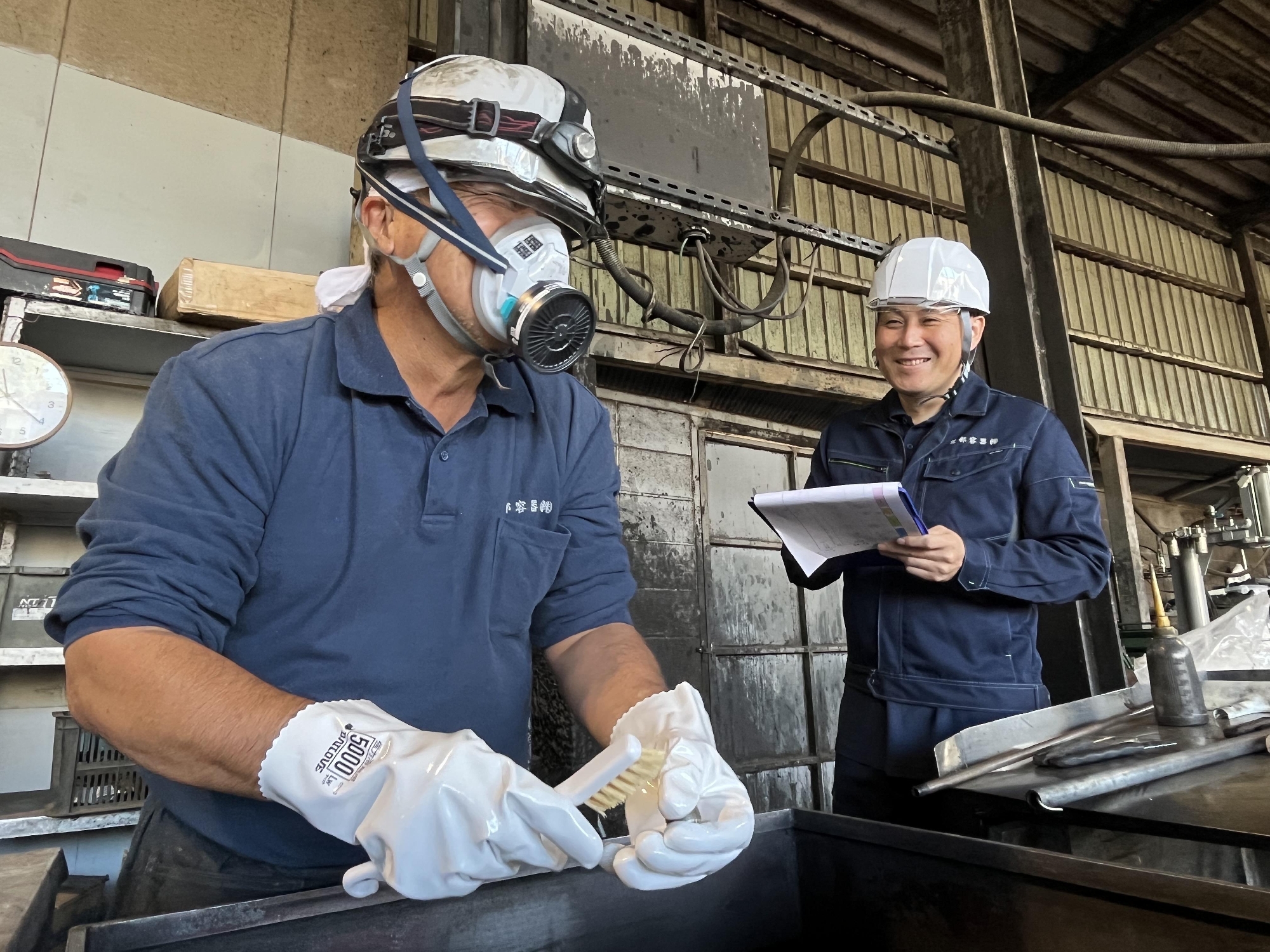 製造部門 1枚目写真:石井主任 2015年入社 2枚目写真:藤元部長 2005年入社